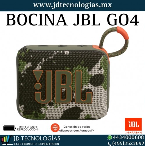 BOCINA JBL GO4 ORIGINAL COLOR CAMUFLAJE, HASTA 7 HORAS DE REPRODUCCION MAS 2 HORAS CON PLAYTIME BOOST, CERTIFIACION IP67 CONTRA AGUA Y POLVO, EMPAREJAMIENTO ETEREO Y CONEXION CON VARIOS ALTAVOCES CON AURACAST